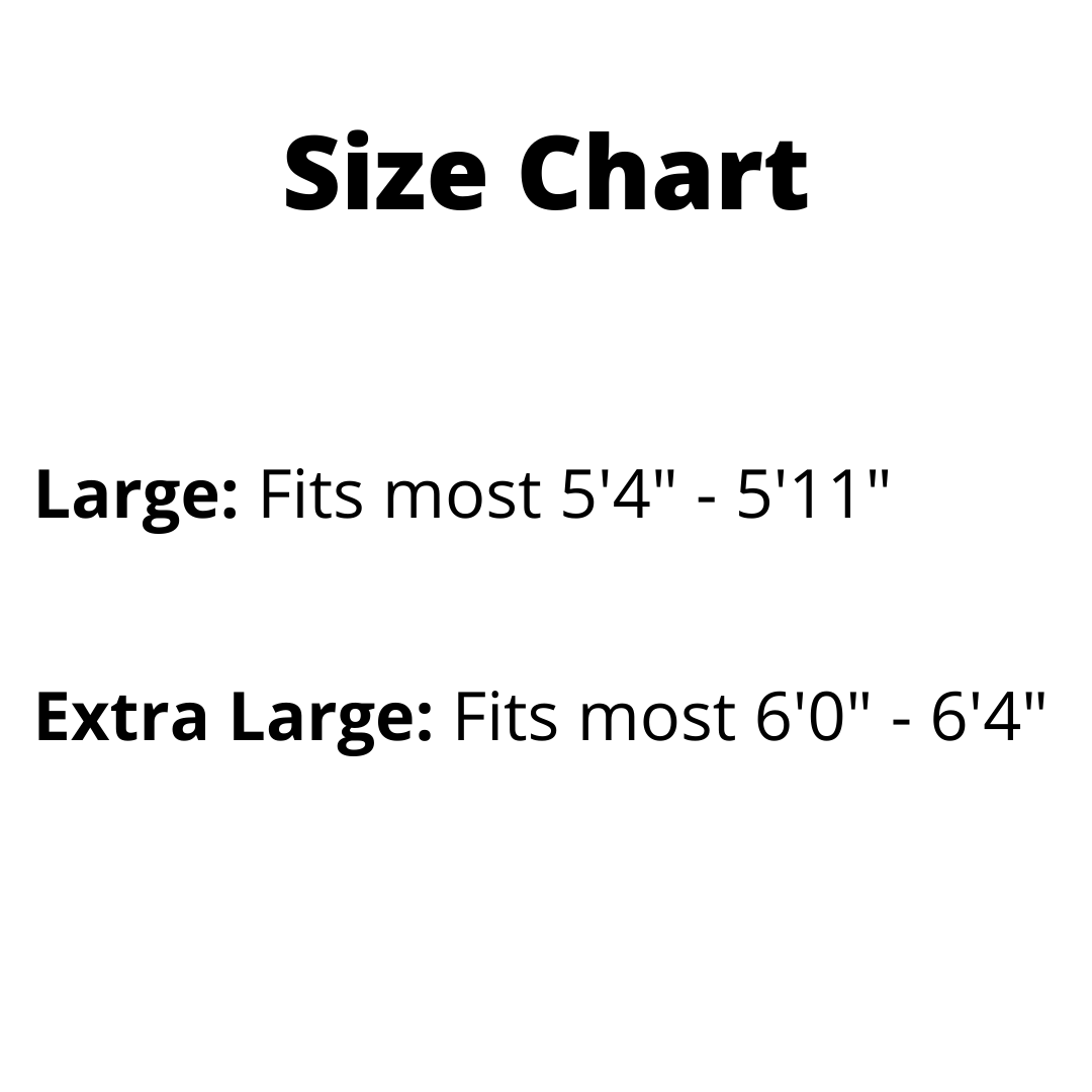 - TWO SIZES: Our Large size fits anyone from 5'4" to 5'11" Our Extra Large size fits anyone 6'0"-6'4".